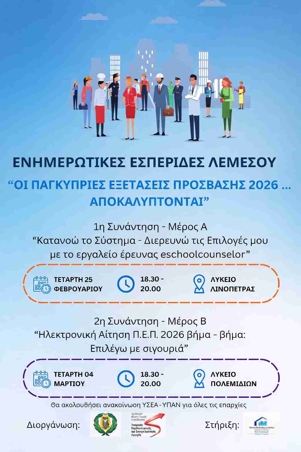 [10/2/2026] Ενημερωτικές Εσπερίδες Παγκύπριων Εξετάσεων Πρόσβασης 2026