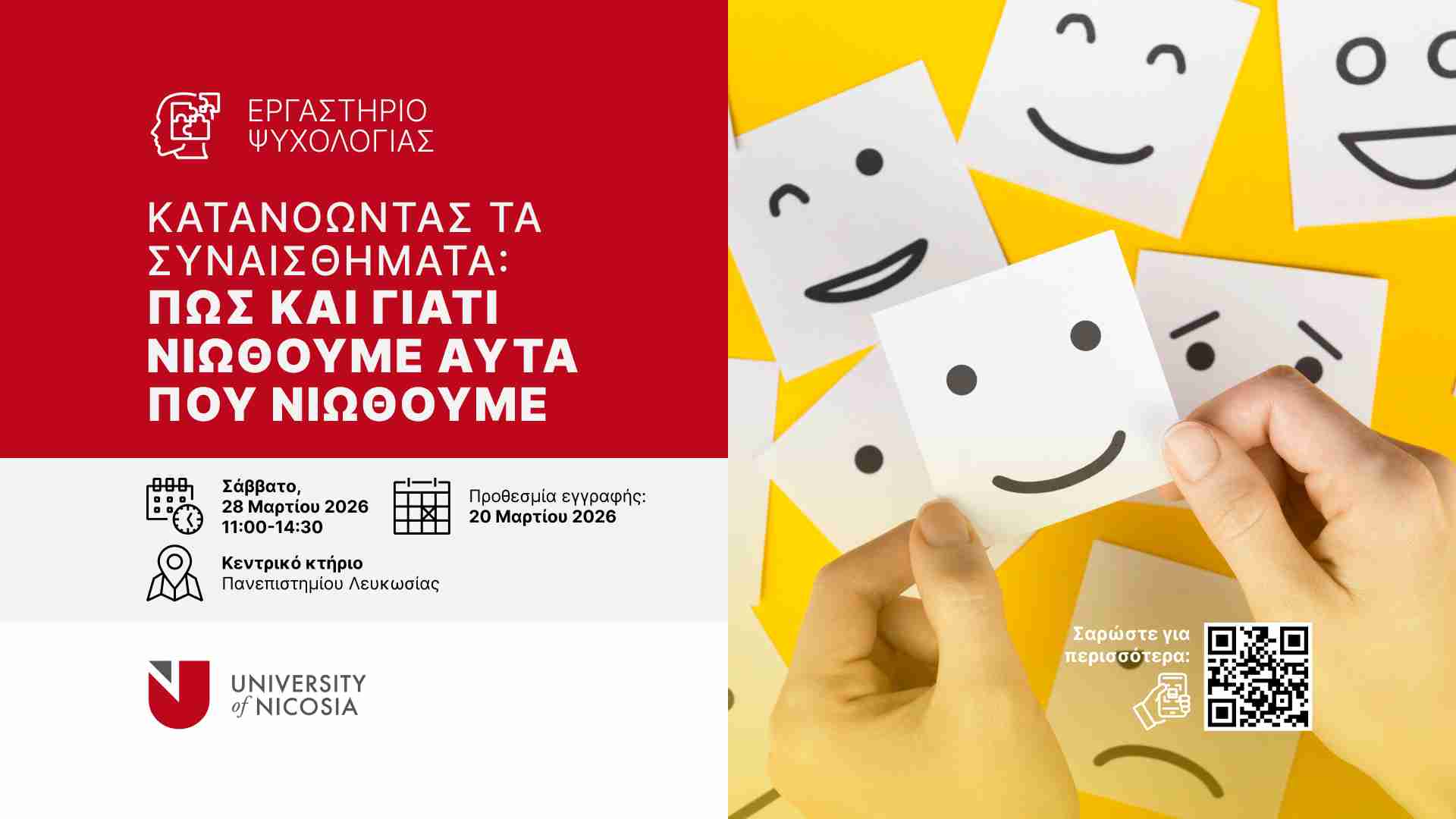 [09]/03/2026] 'ΕΡΓΑΣΤΗΡΙΟ ΨΥΧΟΛΟΓΙΑΣ-ΠΑΝΕΠΙΣΤΗΜΙΟ ΛΕΥΚΩΣΙΑΣ' 28/3/26 11:00-14:30
